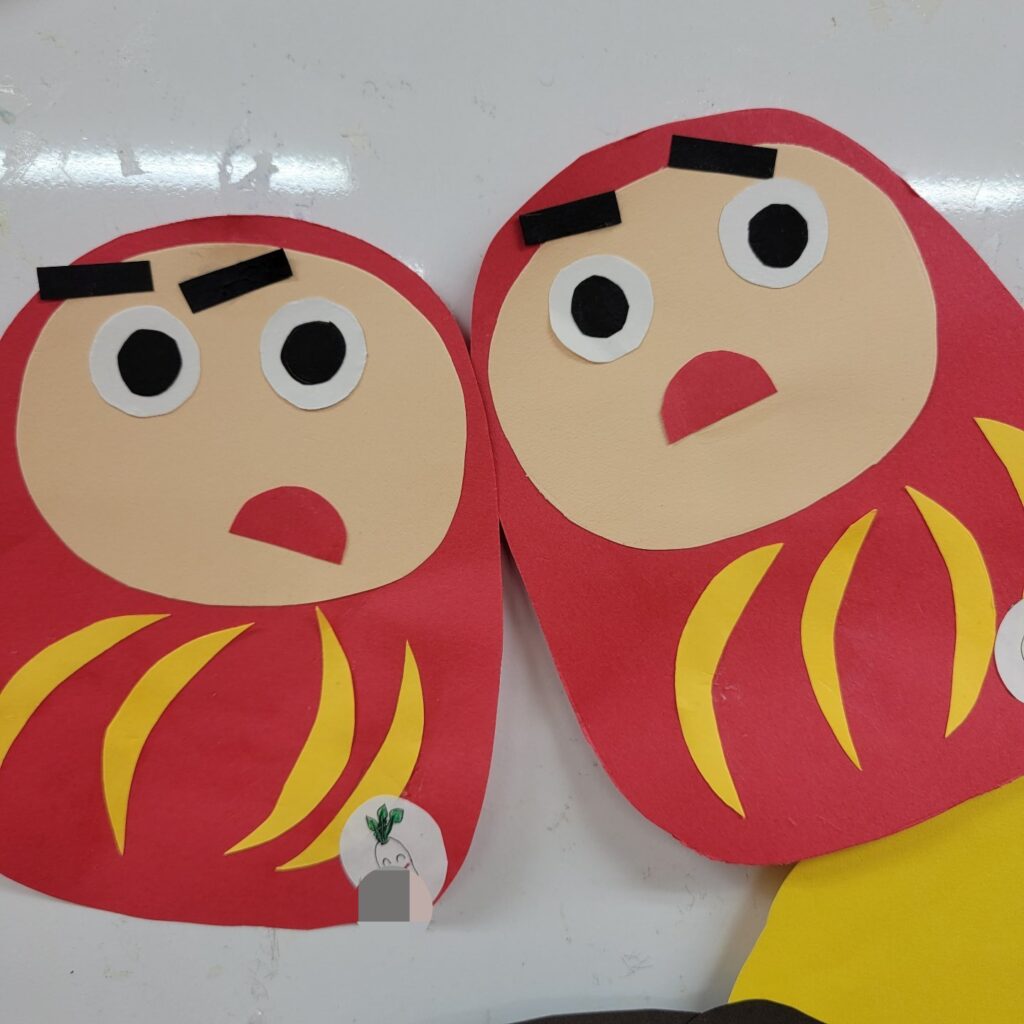 2歳児 のりを使ってだるま作り